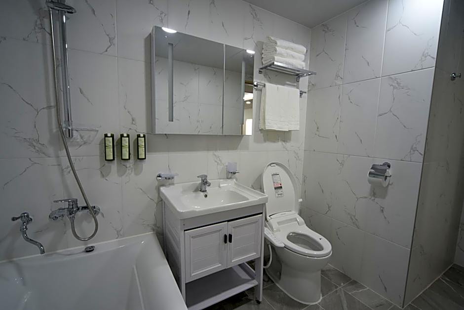 The spacious family room provides air conditioning, an electric kettle, as well as a private bathroom featuring a bath and a bidet. This family room features heating, a flat-screen TV and city views. The unit offers 2 beds.